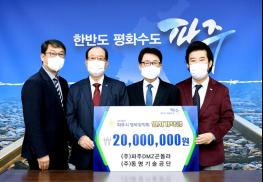 파주시 출자기관인 ㈜파주디엠지곤돌라와 모 회사인 (주)동명기술공단이 11일, 장학금 2,000만원을 행복장학회로 기탁했다.