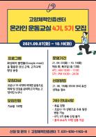 고양도시관리공사 고양체력인증센터는 코로나-19로 지친 고양시민들의 건강증진을 위해 ‘4기·5기 온라인 운동교실’모집을 시작했다고 23일 밝혔다.