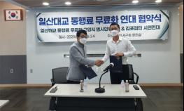 김천만 고양시 일산대교 무료화 범시민추진위원장은 지난 21일 고양시 일산서구청에서 ‘일산대교 무료화 범시민 추진’에 필요한 긴밀한 협력관계를 다지기 위해 서형배 김포시 김·검 시대 시민단체위원장과 양해각서를 체결했다.