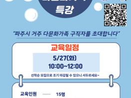 파주시는 다문화 가족과 결혼 이민 여성의 사회 진출을 돕기 위해 기획된 ‘다문화 가족 특강’ 프로그램 참가자를 모집한다.