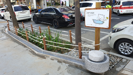 덕양구 능곡동 행정복지센터 앞에는 인하대와 협력해 폐비닐과 폐플라스틱을 활용해 빗물을 저장할 수 있는 8m 길이의 잔디화단을 통해 버려지는 빗물을 저장하는‘빗물 저금통’을 볼 수 있다.
