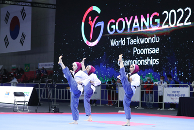 오는 24일까지 나흘간 치러지는 ‘2022 고양 세계태권도품새선수권대회’ 개회식이 오늘 21일 킨텍스 제2전시장 10홀에서 화려한 팡파르를 울렸다.