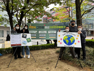 고양시 청년기후환경활동가(그린홉)과정에 참여중인 청년 18명이 4월 22일 일산동구 일산문화공원에서 기후위기 대응을 위한 시민 실천을 촉구하는 지구의 날 캠페인을 실시했다.