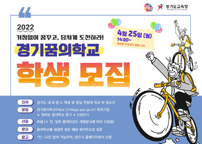 특히, 올해는 찾꿈에 사회적협동조합형 2교와 다꿈에 대안교육형 1교가 새롭게 시작한다. 프로그램 신청은 경기마을교육공동체 홈페이지(https://village.goe.go.kr/)를 통해 가능하다.