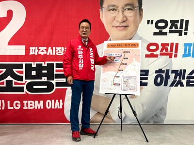 조 후보는 “3호선 파주 연장 사업은 고양 대화역에서 직결로 금릉을 거쳐 문산까지 연장하는 사업으로 파주의 남과 북을 하나로 잇는 교통혁명의 시발점이 될 것”이라고 밝혔다.