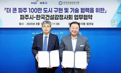 파주시는 지난 13일 시청 접견실에서 김경일 파주시장과 김창근 한국건설감정사회장이 참석한 가운데 ‘더 큰 파주, 100만 도시 구현 및 현안 사업 기술협력’을 위한 업무 협약을 체결했다.