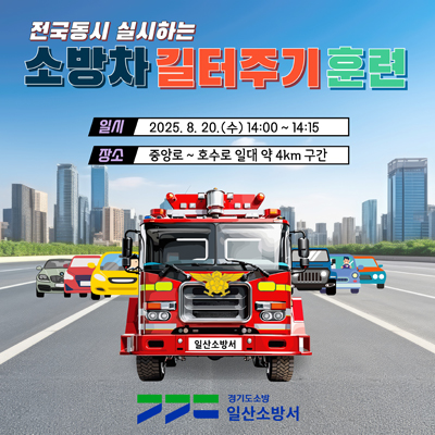 일산소방서는 오는 20일 오후 2시부터 을지연습·민방위 날과 연계해 동시 소방차 길 터주기 훈련을 실시한다고 밝혔다.