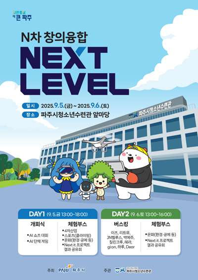 (재)파주시청소년재단 파주시청소년수련관은 오는 9월 5일부터 6일까지 파주시청소년수련관 앞마당 및 체육관에서 청소년과 지역주민을 대상으로 ‘2025 N차 창의융합 NEXT LEVEL’행사를 개최한다.