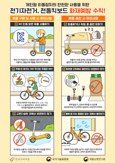 박기완 고양소방서장은 “전동킥보드와 전기자전거는 이용이 편리하지만, 충전이나 보관에 조금만 소홀해도 큰 화재로 이어질 수 있다”며 “시민들의 각별한 주의가 필요하다”고 전했다.