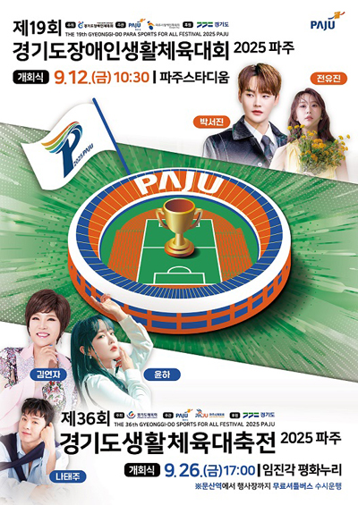 1,420만 경기도민 생활체육인의 화합과 축제의 장, ‘제19회 경기도장애인체육대회 2025 파주’가 오는 9월 12일 파주스타디움에서 개회식을 시작으로 성대한 막을 올린다.