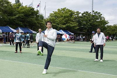 이동환 고양시장이 13, 충장공원 인조잔디구장에서 열린 제23회 고양특례시장배 족구대회에 참석해 축사 후 사인볼 시축을 했다.