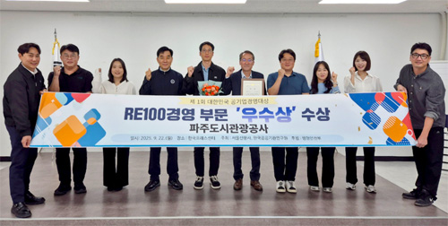 파주도시관광공사(이하 공사)가 서울신문사와 한국공공기관연구원이 주최하고, 행정안전부가 후원하는 ‘제1회 대한민국 공기업경영대상’에서 RE100 경영 부문 ‘우수상’을 수상하는 영예를 안았다.