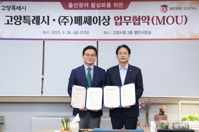 고양특례시는 국내 대표 전시 주최사 ㈜메쎄이상(대표 조원표)이 지자체와는 최초로 출산 장려 활성화 및 건강한 양육 문화 조성을 위해 손을 잡았다고 밝혔다.