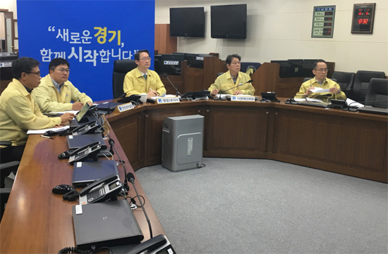 경기도는 5일 오전 김희겸 행정1부지사 주재로 31개 시․군 부시장, 부군수가 참석한 가운데 ‘콩레이’ 대비 영상회의를 열고 대응상황을 점검했다.