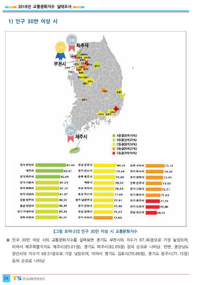 교통문화지수는 국민의 교통안전의식과 교통문화수준을 측정하기 위해 운전형태, 교통안전, 보행형태를 현장, 설문 및 문헌조사를 평가해 매년 발표하고 있다.