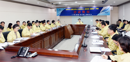 파주시는 28일 현재 빠르게 확산되고 있는 신종 코로나바이러스감염증에 신속하게 대응하기 위해 ‘파주시 신종 코로나바이러스감염증 대응단 긴급점검회의’를 열고 대책 방안을 마련하고 있다.