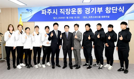 파주시는 2020년 1월 1일부로 직장운동경기부 레슬링, 탁구팀을 창단하고 지난 29일 파주스타디움 대회의실에서 창단식을 가졌다.