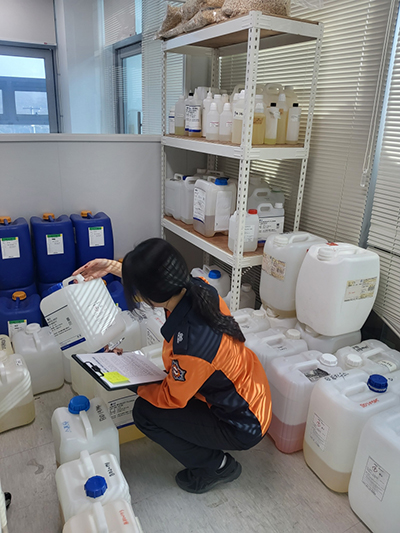 주요 내용은 ▲위험물 안전관리법에 따른 안전기준 준수 여부 확인 ▲화장품 제조업 관련 최근 사고 보도자료 배부 ▲위험물 지정수량 안내문 제공 ▲폭발 우려 장소에 대한 통풍·환기·분진 제거 등 안전조치 교육이다.