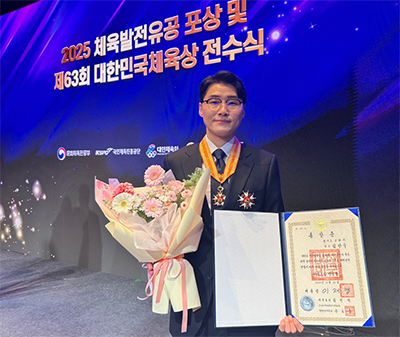 고양특례시 소속 직장운동경기부 세팍타크로팀의 임안수 선수가 지난 21일 서울 웨스틴조선호텔 그랜드볼룸에서 열린 ‘2025 체육발전유공 포상 및 제63회 대한민국체육상 전수식’에서 체육훈장‘맹호장’을 수훈했다.