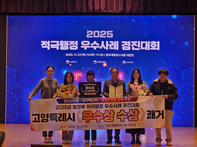전국 최초로 시행된 이 사례는 2025년 상반기 고양시 적극행정 우수사례 경진대회에서 대상을 수상한 데 이어, 지난달 행정안전부·국무조정실·인사혁신처가 공동 주관한 ‘2025 적극행정 경진대회’에서 우수상(행정안전부 장관상)을 수상했다.