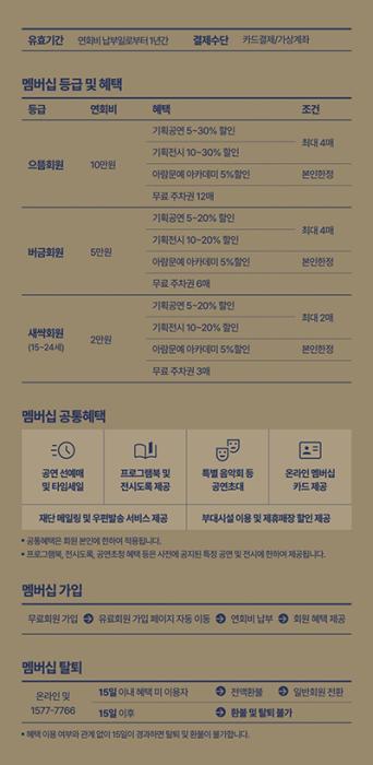 멤버십 등급별로 기획공연·전시 예매, 아카데미 수강 등 할인 혜택