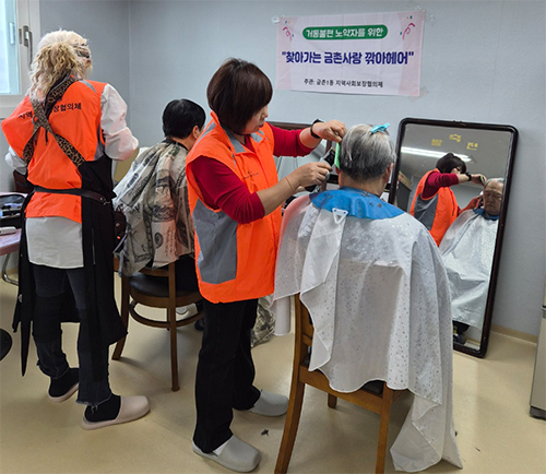 이번 행사는 거동이 불편하거나 경제적 어려움으로 미용 서비스를 이용하기 힘든 어르신들의 위생 관리와 정서적 안정을 돕기 위해 마련됐다. 이날 재능봉사자 유지연, 송현아 씨와 금촌사랑협의체 위원들이 직접 참여해 따뜻한 나눔을 실천했다.