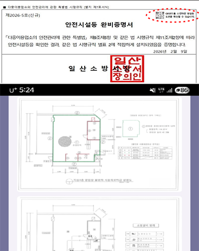 이에 일산소방서는 신규로 안전시설 등 완비증명서를 발급받는 다중이용업소를 대상으로, 소방시설 평면도·불연화 평면도·현장 방염처리 평면도 등 3종 도면을 QR코드로 제작해 완비증명서에 삽입할 수 있도록 업무 편의성을 높였다. 완비증명서에 포함된 QR코드를 스마트폰으로 스캔하면 즉시 도면을 확인할 수 있는 것이다.