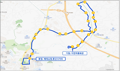 이번에 신설되는 노선은 이전마을회관에서 해태쇼핑·중산사거리를 잇는 구간으로, 둥지마을, 청아공원, 고봉초교·중산고교 등을 경유한다.