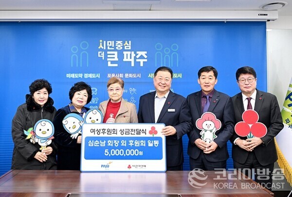 파주시는 11일, 파주시여성후원회(1대 회장 심순남)로부터 관내 저소득 취약계층 지원을 위한 성금 500만 원을 기탁받았다고 밝혔다.