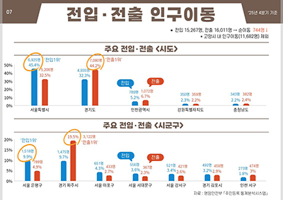 자료는 시민 눈높이에 맞춘 인포그래픽 형태로 제작됐으며, ▲핵심 지표 요약 ▲전국·경기도 비교 ▲구·행정동 단위 분석 ▲인구이동 흐름 ▲기획특집 등으로 구성된다.
