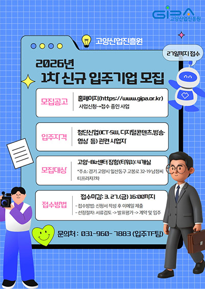 고양산업진흥원(원장 한동균)이 운영하는 기업시설에 입주할 신규 기업을 오는 27일까지 모집한다.