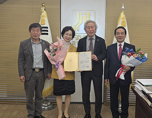 좌로부터 대한민국예술문화총연합회 사무총장 유양수, 윤귀분 시인, 다선 김승호 박사, 조강훈 회장 |