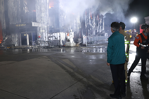 이동환 고양시장이 지난 16일 오후 덕양구 관산동 화재현장에 방문해 피해 상황과 화재진압 상황을 살폈다.